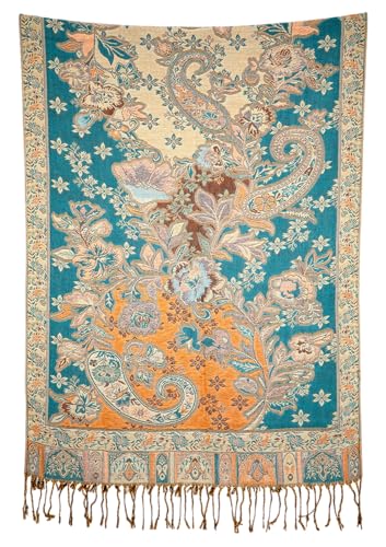 HOT ! Achillea 2 Pack Steel Blue Paisley Pashmina and Teal Dark Amber Floral Shawl Bundle