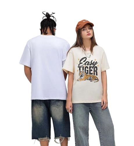 HOT ! Easy Tiger Shirt Women Men Vintage Distressed Tiger Graphic Tee Casual-Chic Short Sleeve Tops
