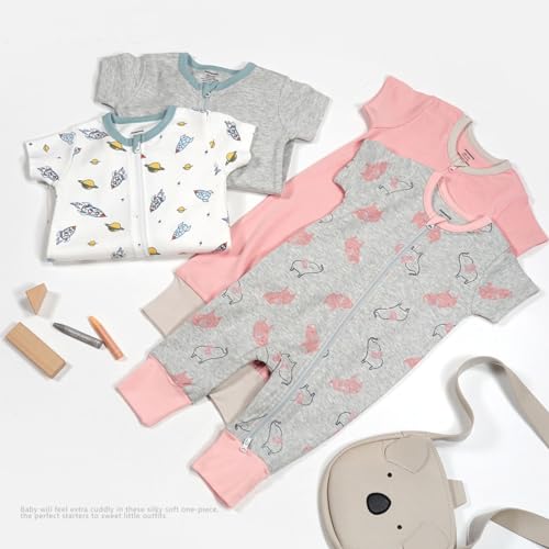 Teach Leanbh Baby Boys Girls 2 Pack 2 Way Zipper Footless Pajamas Cotton Short Sleeve Printing Romper Sleep and Play 4