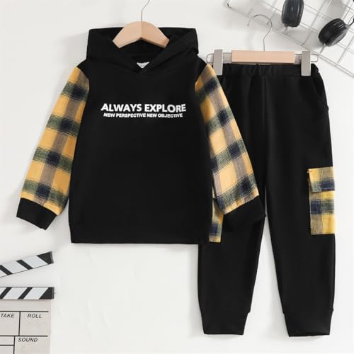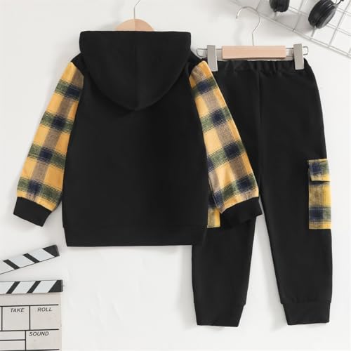 2-6T Toddler Baby Boy Clothes Long Sleeve Hooded Pullover Plaid Sweatshirt + Pants 2pcs Fall Winter Outfit Set 6