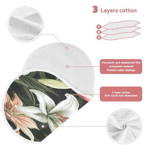 Pretty Lilies Baby Burp Cloths, Cotton Soft Absorbent Burp Cloth, Baby Bib Cloths Spit Up Rags for Newborn Boys Girls, 2 Pack, 22”x11” 5