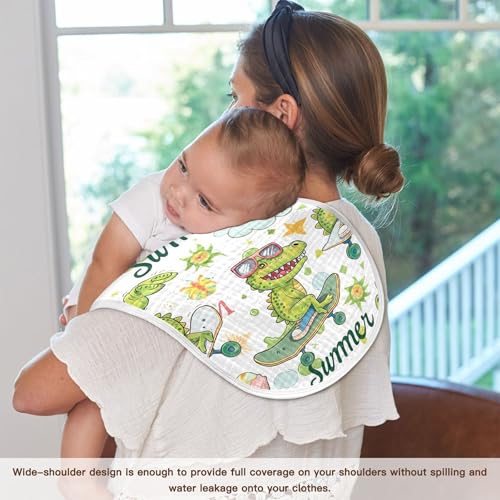 xigua Cartoon Alligator Baby Burp Cloths for Newborn Boys and Girls 2 Pack, Soft & Absorbent Cotton Baby Burp Cloth, Baby Washcloths, Newborn Towel, Burp Rags 5