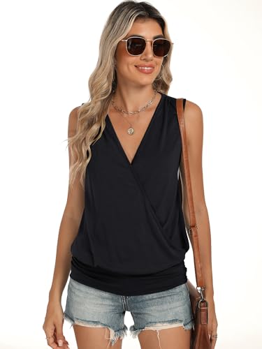• Features - Surplice wrap and shirring detailed bottom hem design, v neck, sleeveless, a little bit ruched. This tank tops is suitable for everyday wear such as travel, holidays, casual outings, dating, nightout, and parties. It easily pairs with jeans, shorts or dressy pants, allowing you to create perfect and diverse looks for any season.