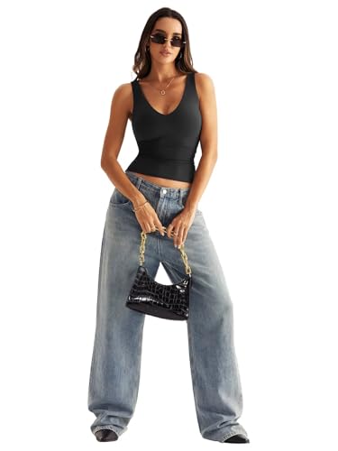 Womens V Neck Tank Tops Sleeveless Double Lined Basic Tops Slim Fit Summer Shirts 2025 2