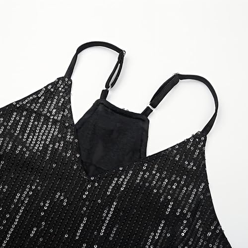 Womens Sequin Sleeveless Sparkly Tank Tops V Neck Strappy Shimmer Cami Top Sparkle Shirt 6