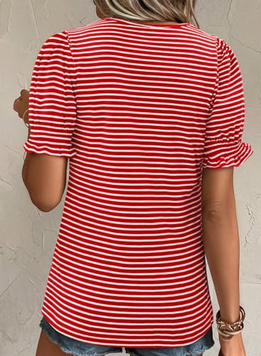 CRAZY GRID Women's Summer Tops Ruffle Short Sleeve 2025 Casual Knit Loose Fit T-Shirt 4