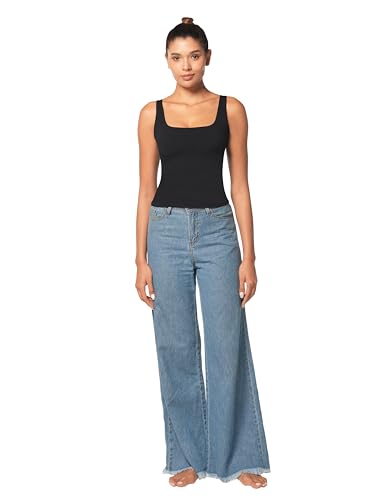 HOT ! Sunzel Women's Square Neck Tank Top Longline Workout Yoga Sleeveless Double Lined Basic Tight T Shirts Going Out Casual Tops