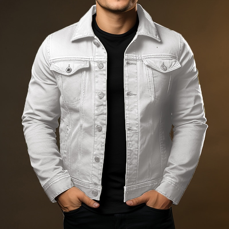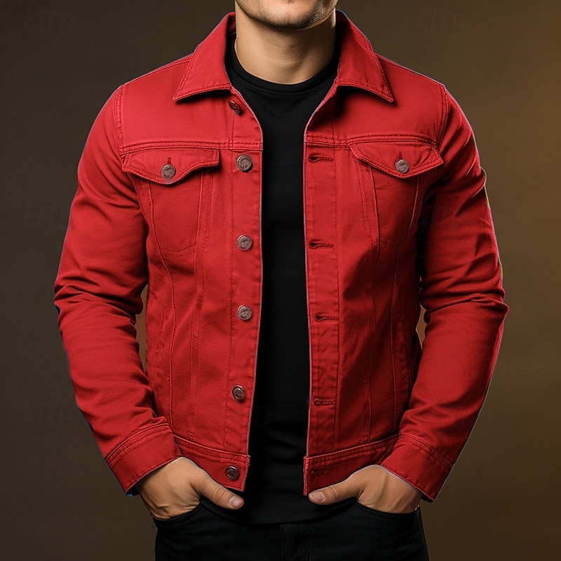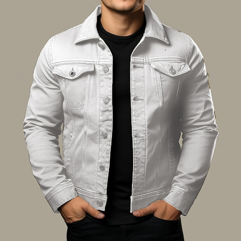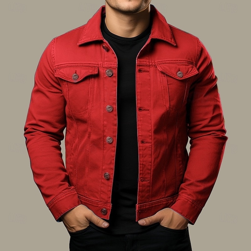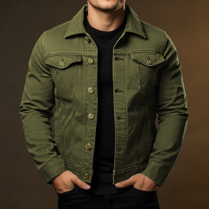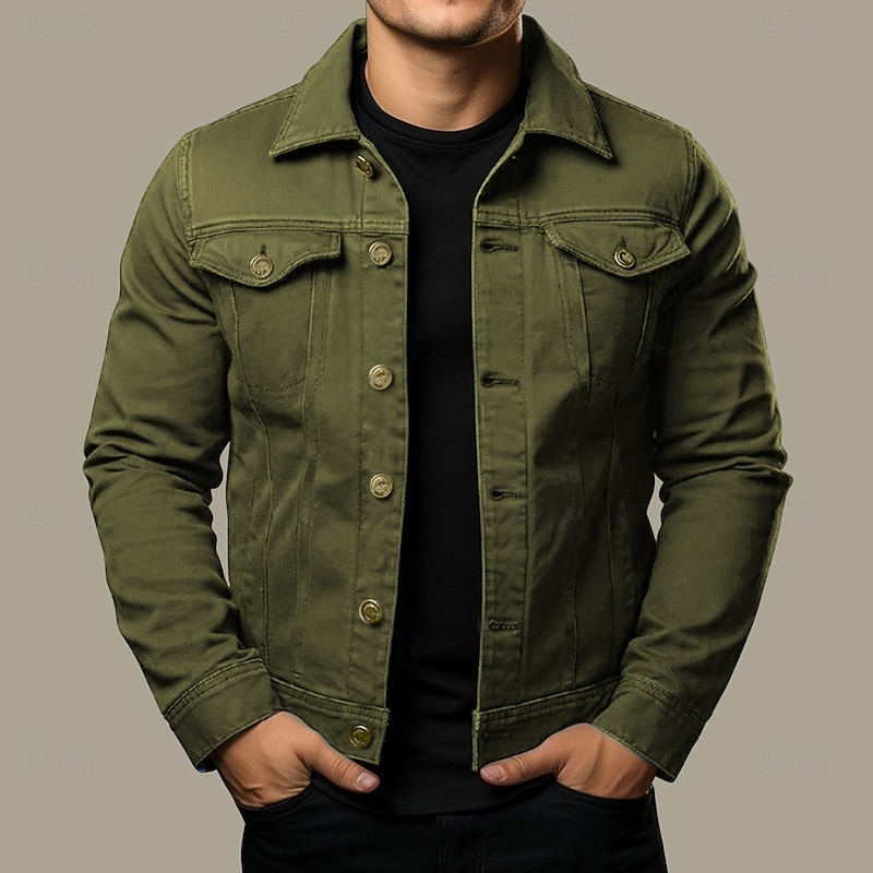 More information about Men's Shirt Jacket Cargo Jacket Daily Wear Windproof Buttons All Seasons Solid Color Streetwear Lapel Regular Black White Red Navy Blue Blue Jacket