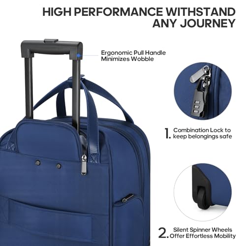 • EASY TO MANEUVER: Featuring silent spinner wheels, this under seat suitcase guarantees smooth gliding on any surface. 2-step ergonomic high-grade aluminum tube handle can adjust to multiple heights while minimizing wobble, which offers easy mobility