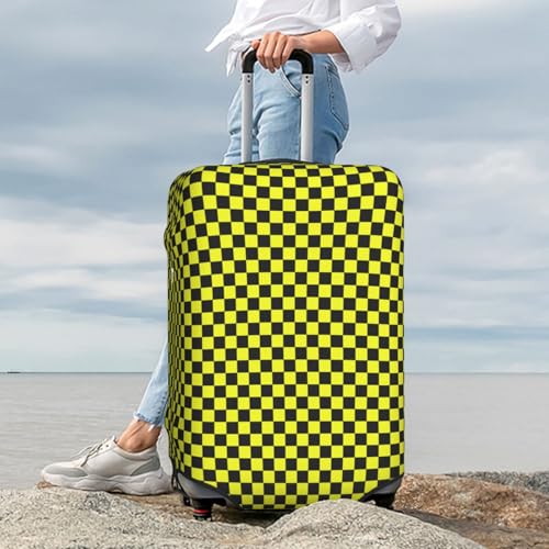 Yellow And Black Chessboard Pattern Elastic Travel Luggage Covers Dustproof Scratch-Resistant Suitcase Protector Fit 22-24 Inch 1