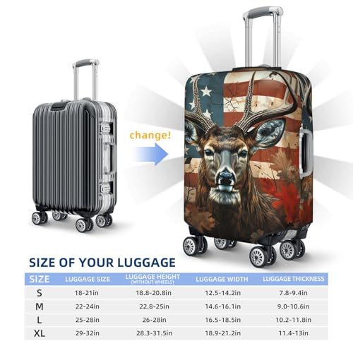 Deer Camo American Flag Vintage Elastic Travel Luggage Cover Travel Suitcase Cover for Trunk Case 19''-32'' Luggage Protective Cover 1