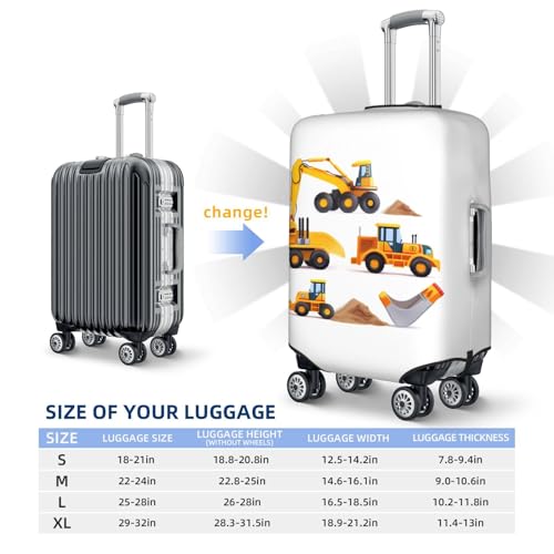 HOT ! Machinery Truck and Loader Travel Luggage Cover Fits 22"-24" Luggage, Cartoon Washable Spandex Suitcase Covers for Work Outdoor