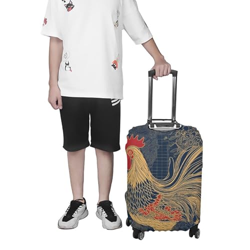 HOT ! Striped Golden Rooster Suitcase Covers Luggage Protector - Travel Elastic Baggage Case Protective, Washable Anti-scratch Large Suit Case Cover for Suitcases Fits 19-32 Inch Luggages M
