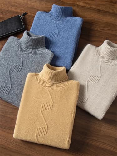 Men's Luxury Thick 100 Percent Goat Cashmere High Collar Sweater Warm Cosy Smart Casual Pullover 4