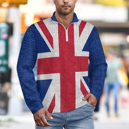 British Flag Men's Knit Polo- Sweater Classic Convenient Long Sleeve Zipper Pullover Sweater 6
