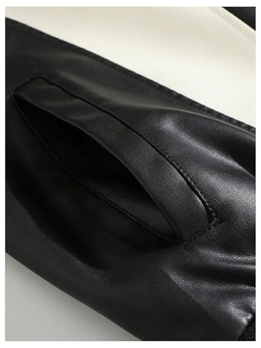 Men's Y2k PU Leather Jacket Color Block Motorcycle Coat Zip Up Long Sleeve Outerwear with Pockets Streetwear 4