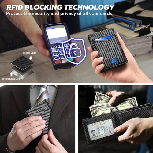 Wallet for Men, Magnetic Pop-Up Card Holder Easily Removable, Slim Minimalist Wallet Leather Slots Credit Card Holder Wallet RFID Blocking Bifold Gift for Men 6