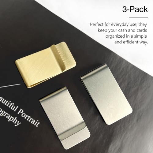 3-Pack Small Men’s Slim Money Clip – Stainless Steel Credit & Business Card Holder, Pocket Cash Wallet (Silver & Gold) 5