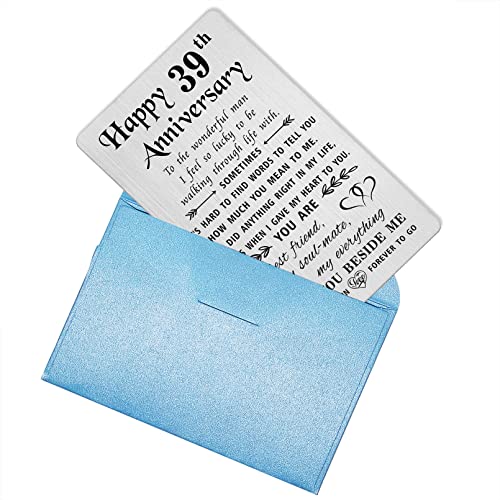 TANWIH 39th Anniversary Card for Him Husband, 39 Year Anniversary Card Gifts for Him Men, 39th Wedding Anniversary for Husband, Engraved Metal Wallet Cards 1