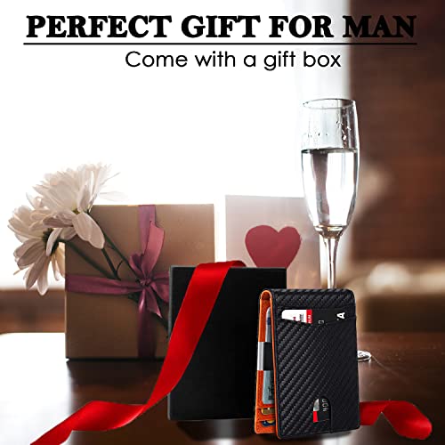 Mens Wallet With Money Clip Minimalist Wallet For Men with ID Window Minimalist Leather Bifold RFID Blocking with 12 Credit Card Slots Bifold Leather Large Capacity with Gift Box(Orange) 6