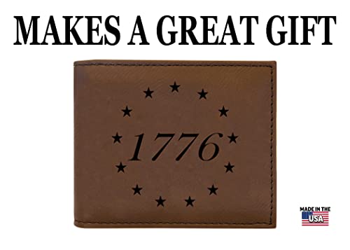 Rogue River Tactical USA American Flag Betsy Ross 1776 Men's Leather Bifold Wallet RFID Gift For Him Dad Father United States Billfold Patriotic 1