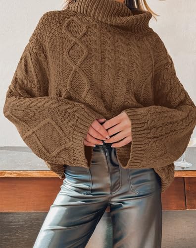 More information about PRETTYGARDEN Fall Sweaters for Women 2025 Oversized Chunky Cable Knit Turtleneck Long Sleeve Winter Pullover Sweater Tops