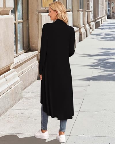 SimpleFun Womens Long Cardigan Drape Open Front Dusters High Low Hem Flowy Lightweight Long Sleeve Cardigans Coats 1
