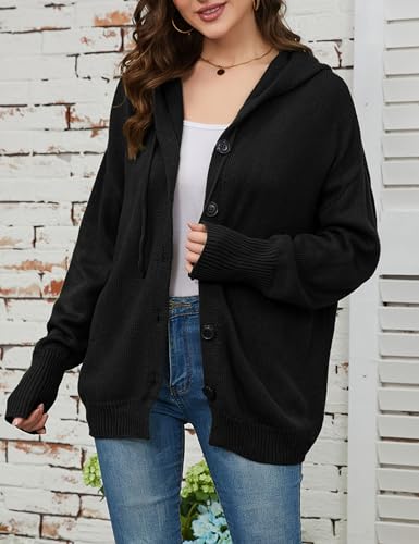 Women's Casual Cardigan V Neck Button Down Hooded Sweaters Long Sleeve Hoodies Outfits 4