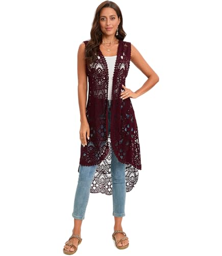 More information about GLEAMISS Women's Crochet Long Vest Sleeveless Lace Cardigan Hollow Out Kimino Cover Up