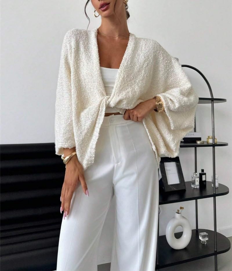 More information about Women's Twist Front Cardigan Oversized Bat Wing Knit Shawl Long Sleeve V Neck 2025 Fall Trendy Sweater Tops