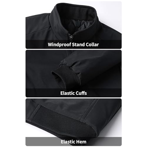 PEGENO Men's Windproof Jacket,Fleece Lining For Stand Collar Winter Coat 4