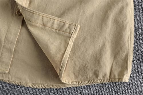 Men Vintage Cargo Shirt Jacket Casual Canvas Cotton Military Uniform Light Work Safari Shirts Tops 6