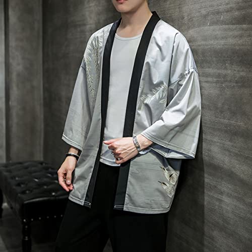 Men's Japanese Haori Jacket Kimono Cardigan 3/4 Sleeve Noragi Casual Happi Coat 3