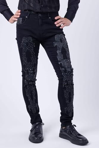 Barabas Men's Studded Stretchable Denim Solid Color Jeans 4JER01 5