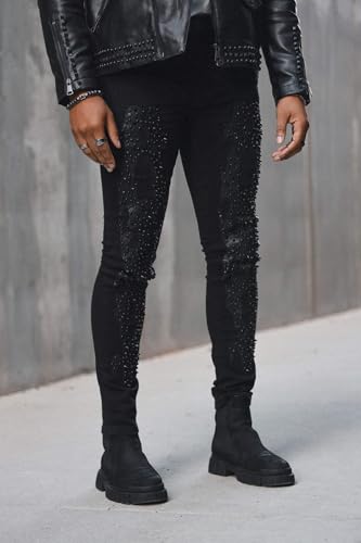 Barabas Men's Studded Stretchable Denim Solid Color Jeans 4JER01 6