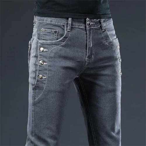More information about Men Slim Skinny Jeans Classics Solid Color Stretch Multi-Button Youth Denim Pants