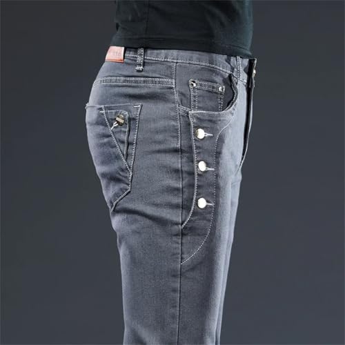 Men Slim Skinny Jeans Classics Solid Color Stretch Multi-Button Youth Denim Pants 4