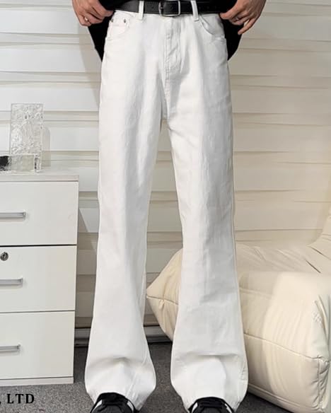 Men's White Casual Stretch Vintage Jeans Loose Y2k Hip Hop Straight Bell Bottoms 1