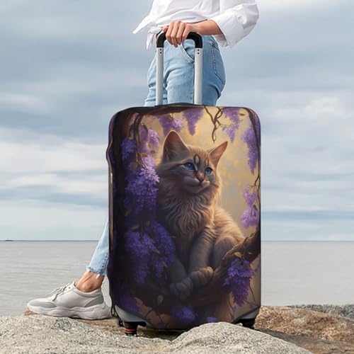 • Versatile Sizing - Perfect Fit: Our suitcase covers Purple Flower Lazy Cat for luggage come in four specific sizes to ensure an ideal fit for any suitcase. Small covers fit 18-21 inch suitcases, Medium are perfect for 22-24 inches, Large cover 25-28 inches, and X-Large accommodate 29-32 inches. The elastic material ensures a tight and secure wrap around your luggage.