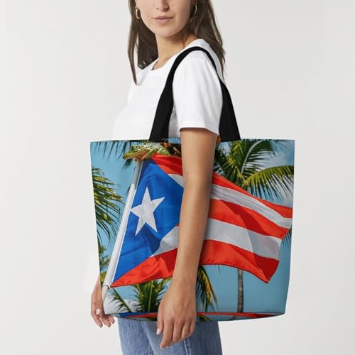 • Heavy-Duty & Spacious: Carry up to 40+ lbs effortlessly with our Puerto Rico Flags Frog Palm Trees large-capacity reusable tote bag, designed to replace 2-3 conventional grocery bags while reducing plastic waste.