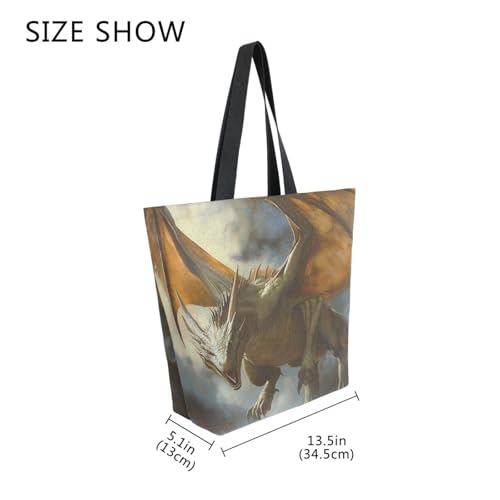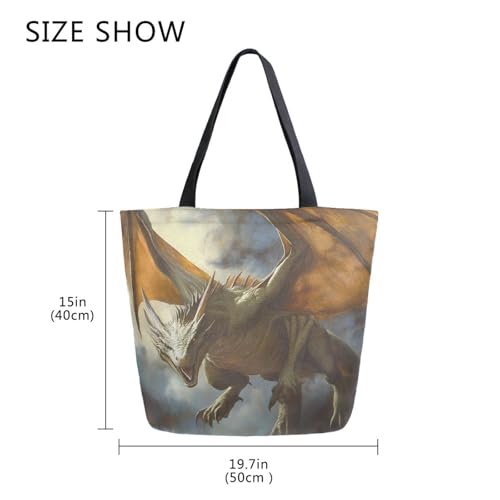 HOT ! Extra Large Shoulder Tote Bag for Beach Travel Weekender Gym Dragon Flying Angry Reusable Grocery Canvas Shopping Bag
