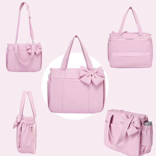 Luvy Bag Crush Bow Tote Bag, Quilted Puffy down Jacket Fabric Messenger Bag for Daily Commuting, Travel, And Fitness Fans 7