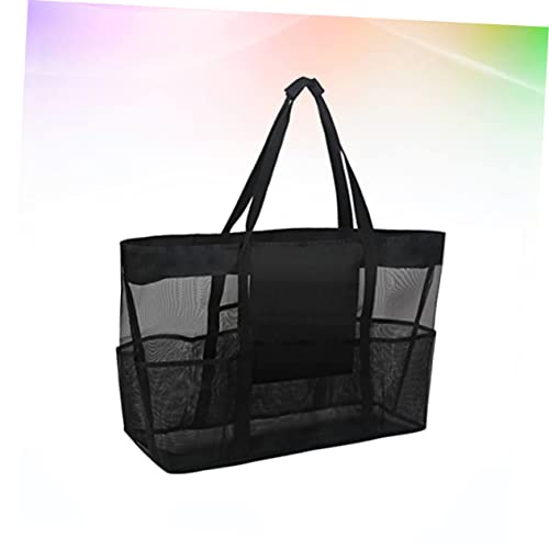 Practical Mesh Beach Tote Bag for Adults Portable Storage Pouch for Clothes Bathroom Essentials Lightweight Water Resistant Design Black 1