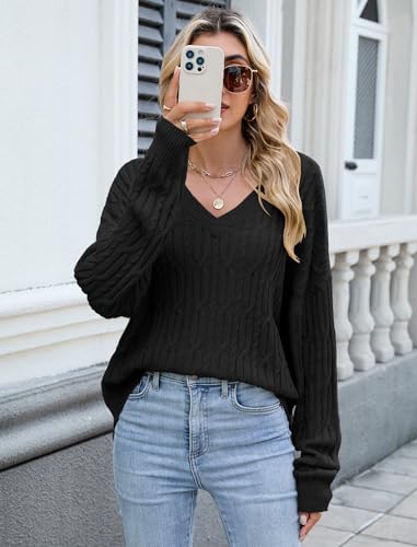 • Classic Design - Women's long sleeve sweater features a classic V-neck and cable knit texture, with a loose fit that fits most body shapes. Dropped shoulders and side slits design enhance the overall shape.The lightweight cardigans for women suitable for spring, fall and winter.