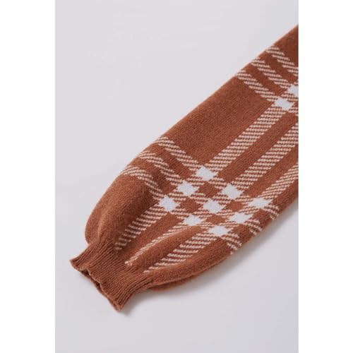 • [ Style Details ] Stay stylish and cozy this season with our Classic Plaid Round Neck Knit Sweater. The timeless plaid pattern brings a touch of sophistication to your wardrobe. Crafted from soft and warm knit fabric, this sweater is perfect for keeping you comfortable during those crisp fall days. The round neckline adds a classic and versatile element, making it easy to pair with jeans or skirts for effortlessly chic outfits.