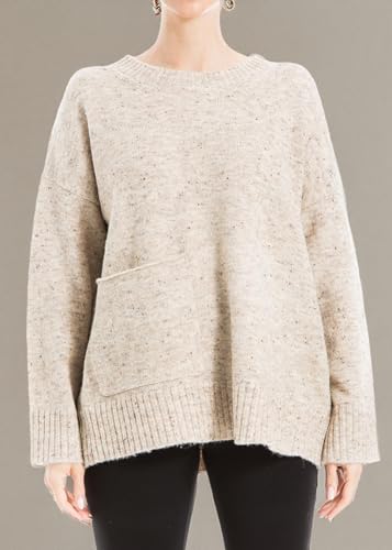 HOT ! Max Studio Women's Pocket Detail Tweed Sweater