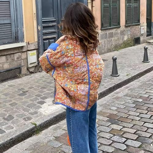 More information about Womens Cropped Quilted Lightweight Jackets Floral Printed Open Front Puffer Coat Cardigan