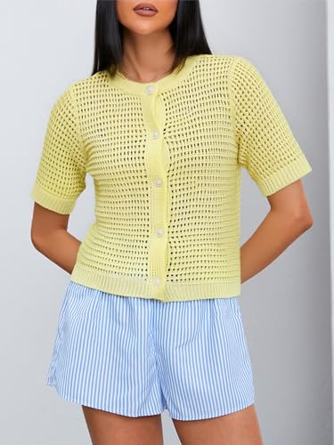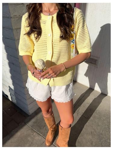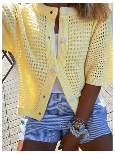 • Womens summer button-up crochet cardigan sweater features a flattering round neck and short sleeves, making it an ideal layering piece