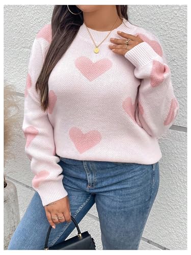 • Plus size, heart print, long sleeve, round neck, loose fit, casual pullover sweater