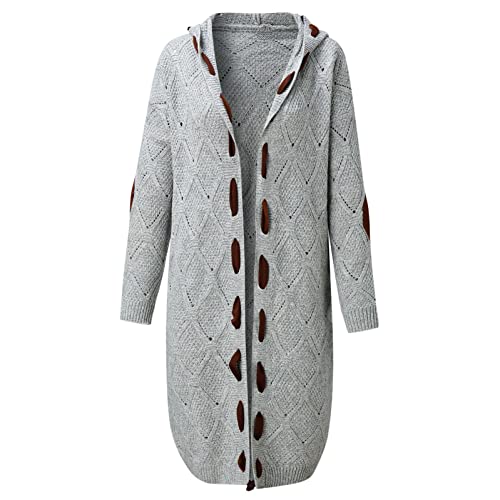 HOT ! Plus Size Hooded Cardigans for Women Casual Elbow Patches Long Sleeve Cable Knit Long Open Front Cardigan Sweater Coat